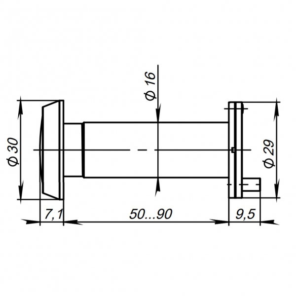 Глазок дверной, оптика пластик DV-3/90-50/P (DVP3/NEW) CP хром