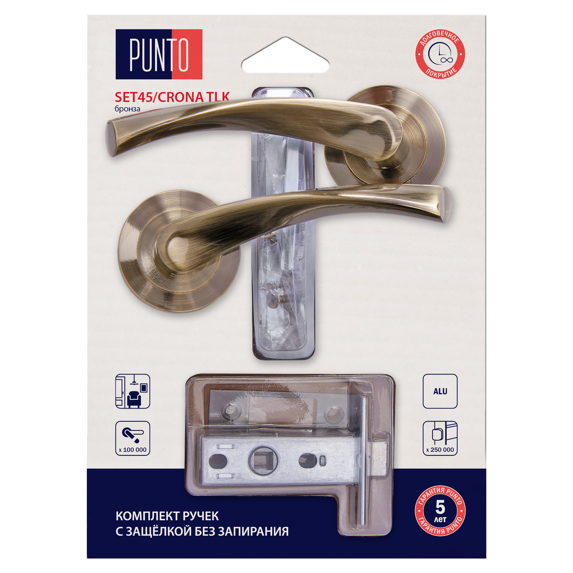 Комплект ручек с защелкой без запирания LM/A SET45R.TLK52.CRONA/HD ABG-6 бронза
