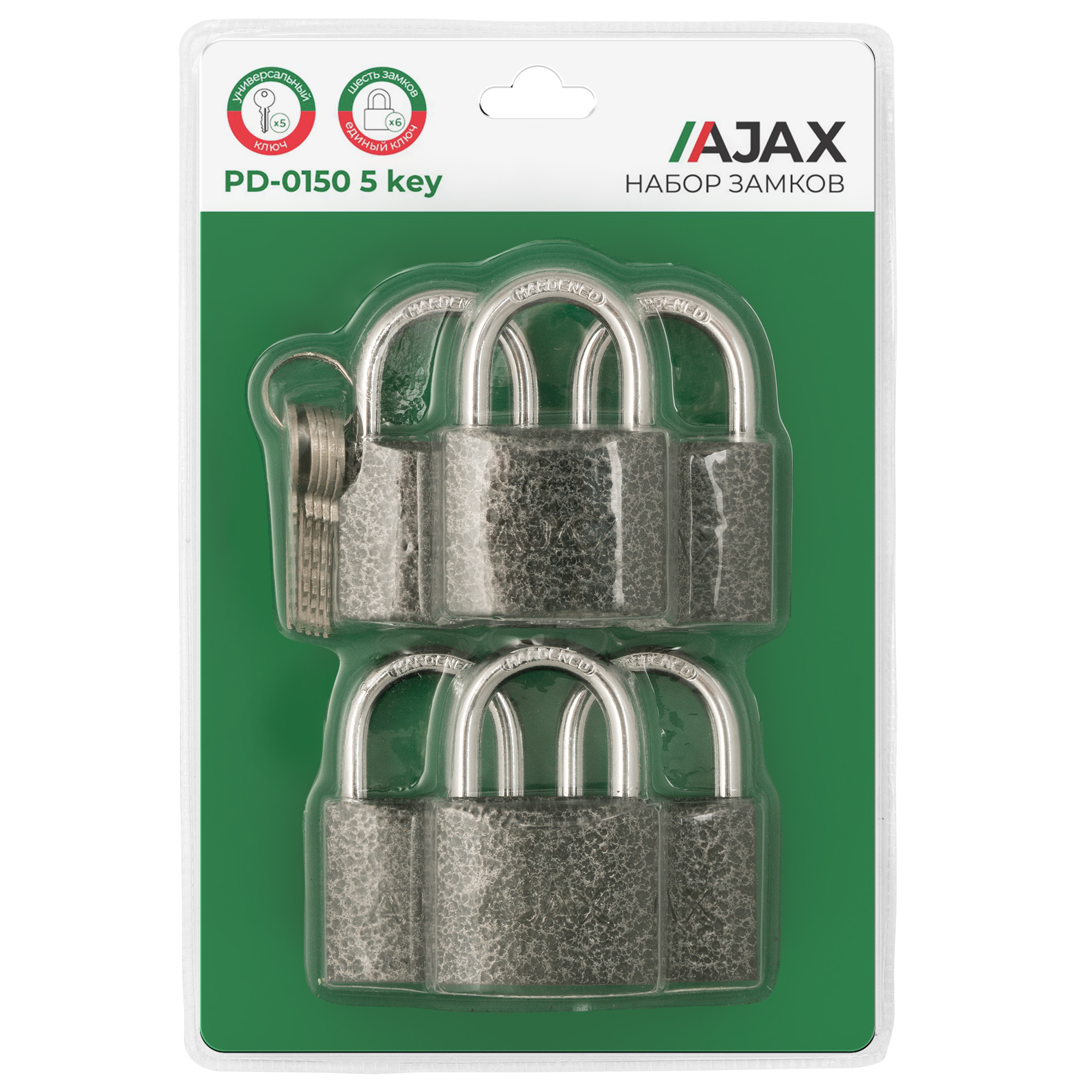 Набор замков навесных PD-0150 (6 locks+5 keys) blister