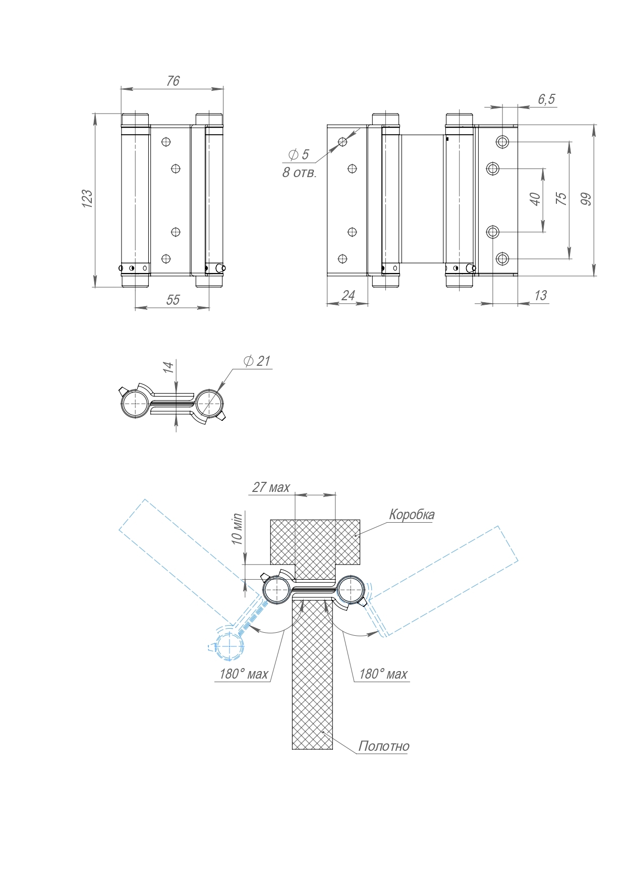 Петля пружинная Aldeghi ALH.100.4 SN мат. никель