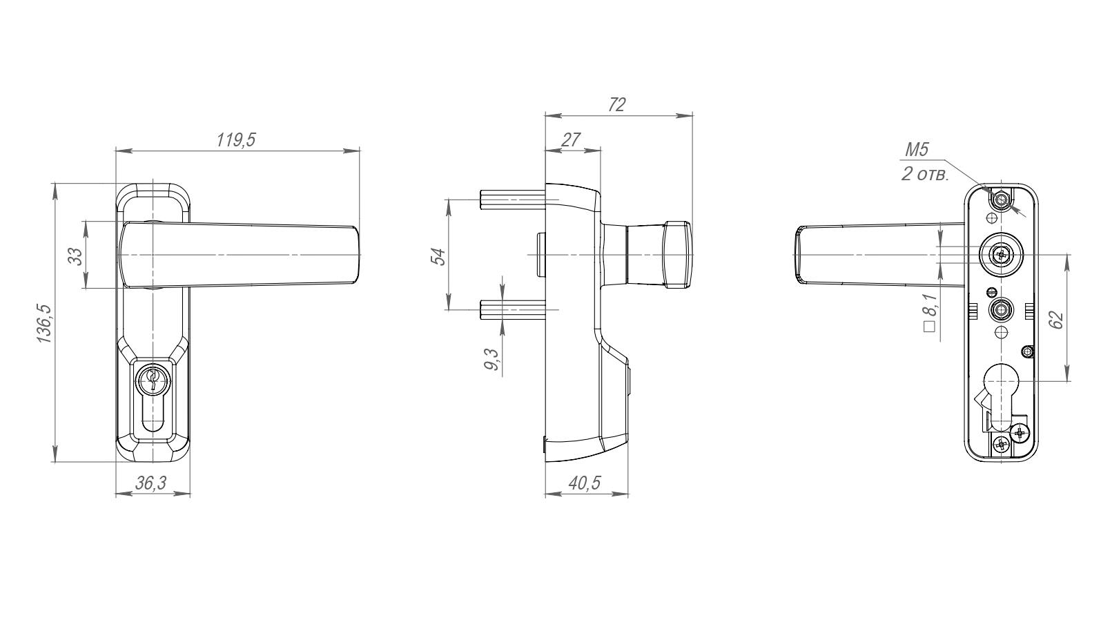Ручка накладная AP.H-136 для узкопрофильных дверей с фиксацией ключом (для моделей 1700В и 1700С)