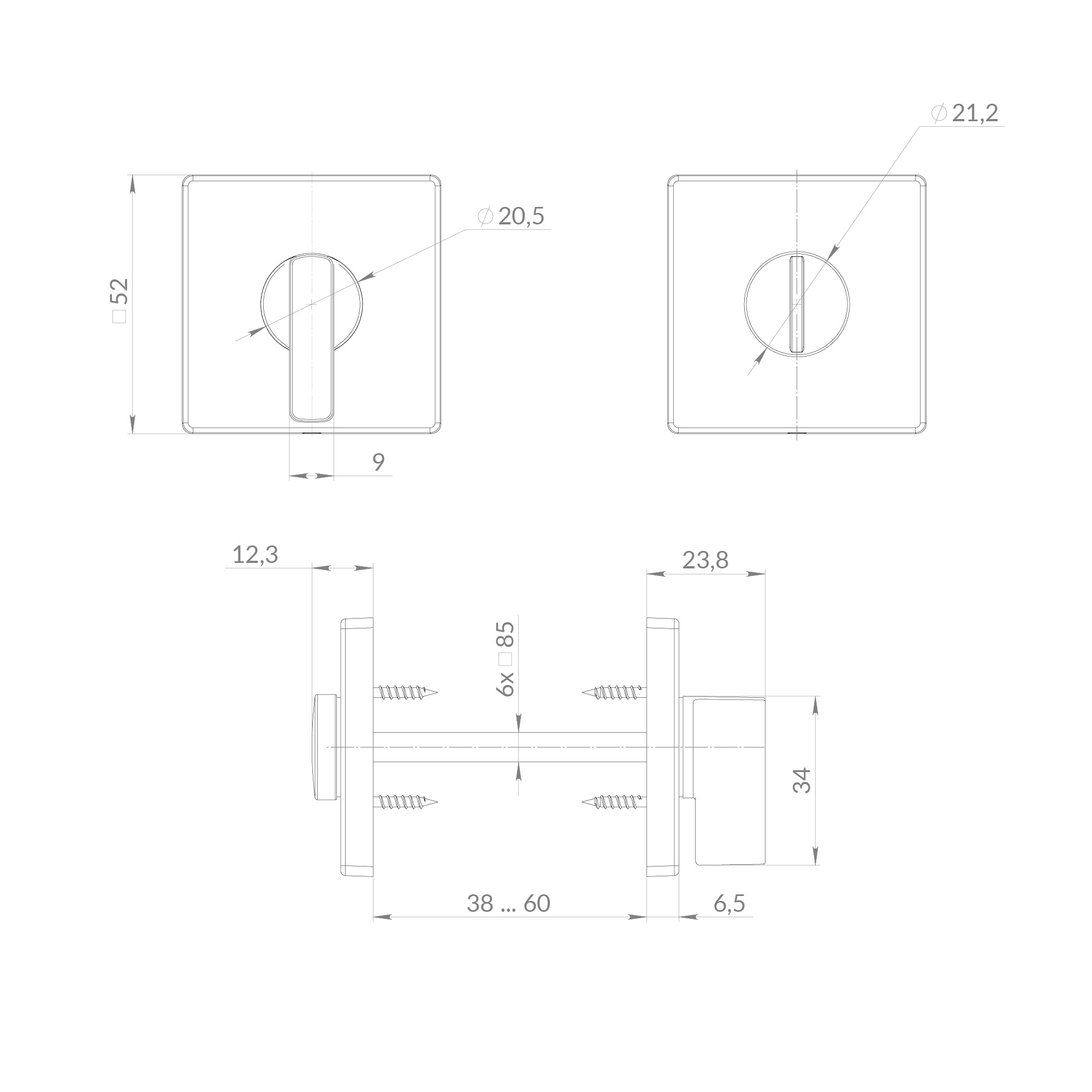 Длина квадрата - 105 мм Материал - ZAMAK Назначение - WC-комплект Тип упаковки - Блистер