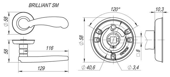 Диаметр розетки (основания) - 58 мм Длина квадрата - 8×105 Материал - ZAMAK Покрытие - Гальваника Тип упаковки - Коробка