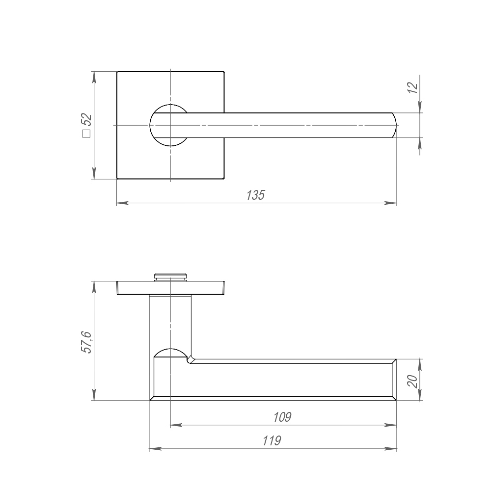 Диаметр розетки (основания) - 52 мм Длина квадрата - 8×105 Материал - Алюминий Покрытие - Гальваника Тип упаковки - Коробка