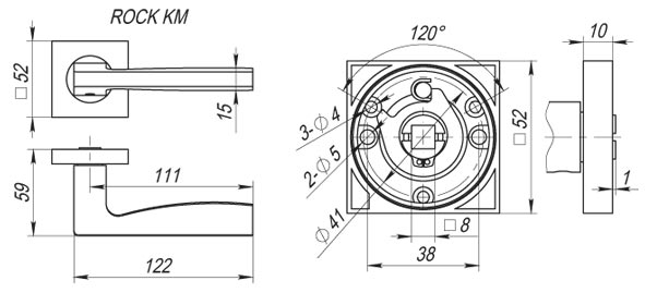 Диаметр розетки (основания) - 52 мм Длина квадрата - 8×105 Материал - ZAMAK Покрытие - Гальваника Тип упаковки - Коробка