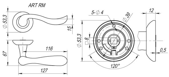 Диаметр розетки (основания) - 53,5 мм Длина квадрата - 8×105 Материал - ZAMAK Покрытие - Гальваника Тип упаковки - Коробка