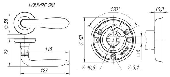 Диаметр розетки (основания) - 58 мм Длина квадрата - 8×105 Материал - ZAMAK Покрытие - Гальваника Тип упаковки - Коробка