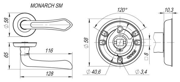 Ручка раздельная R.SM58.MONARCH (MONARCH SM) MAB-6 темная бронза