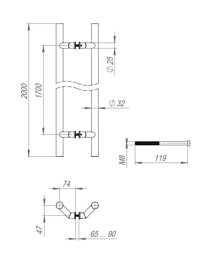 Ручка-скоба PULL.PH32/2000.45 INOX 304