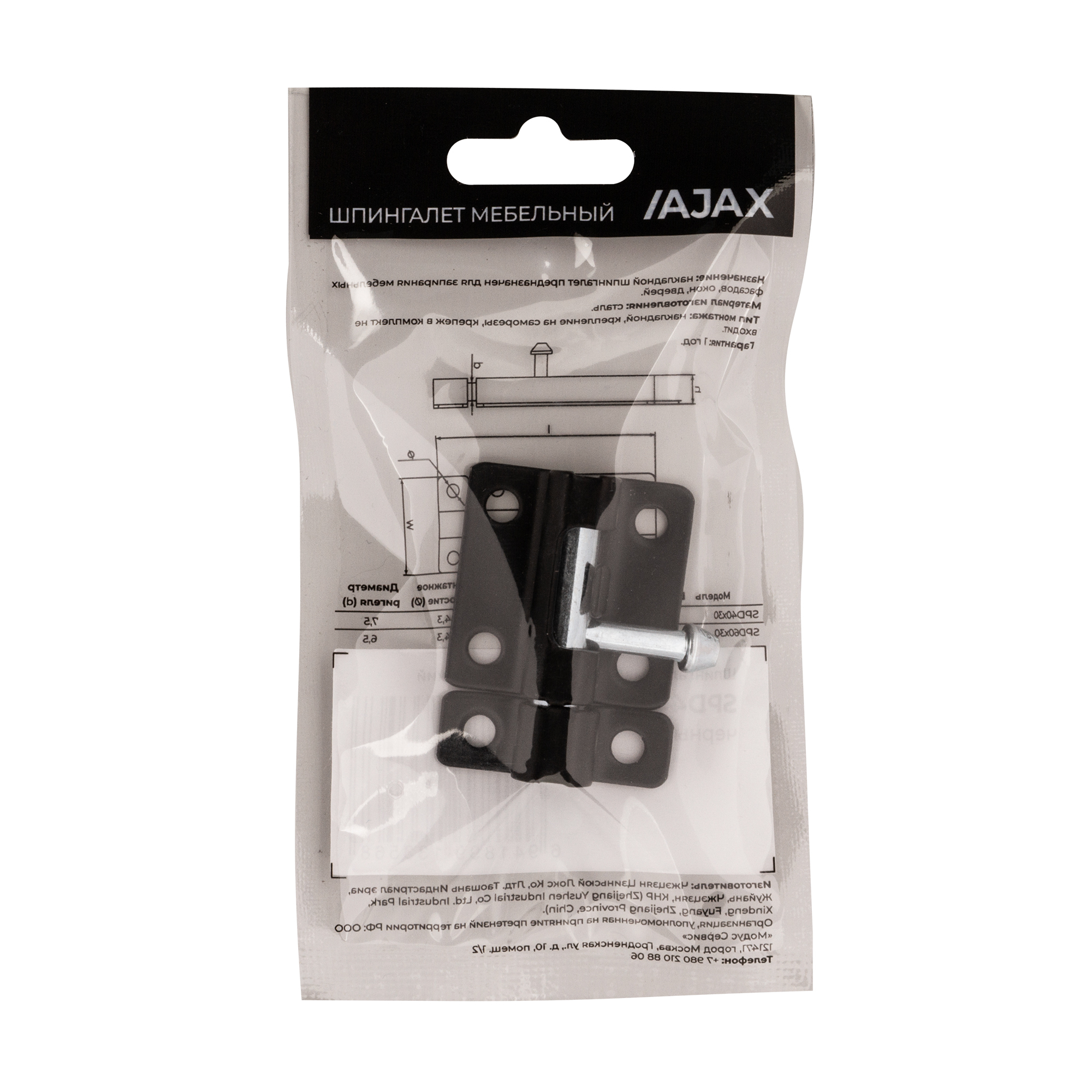 Шпингалет мебельный металлический SPD40х30 BL черный