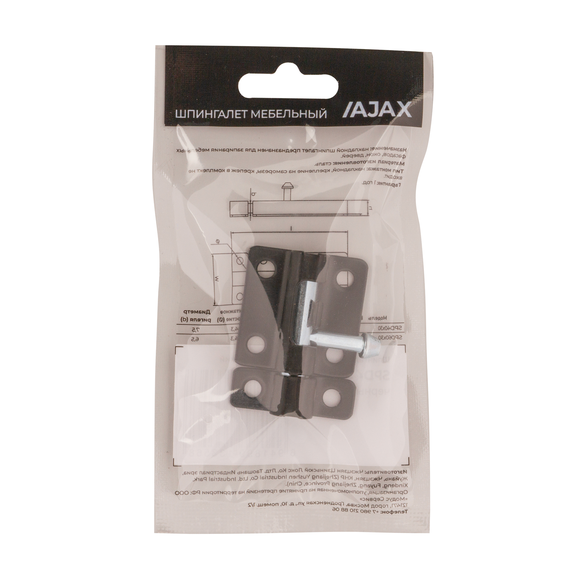 Шпингалет мебельный металлический SPD40х30 BR коричневый