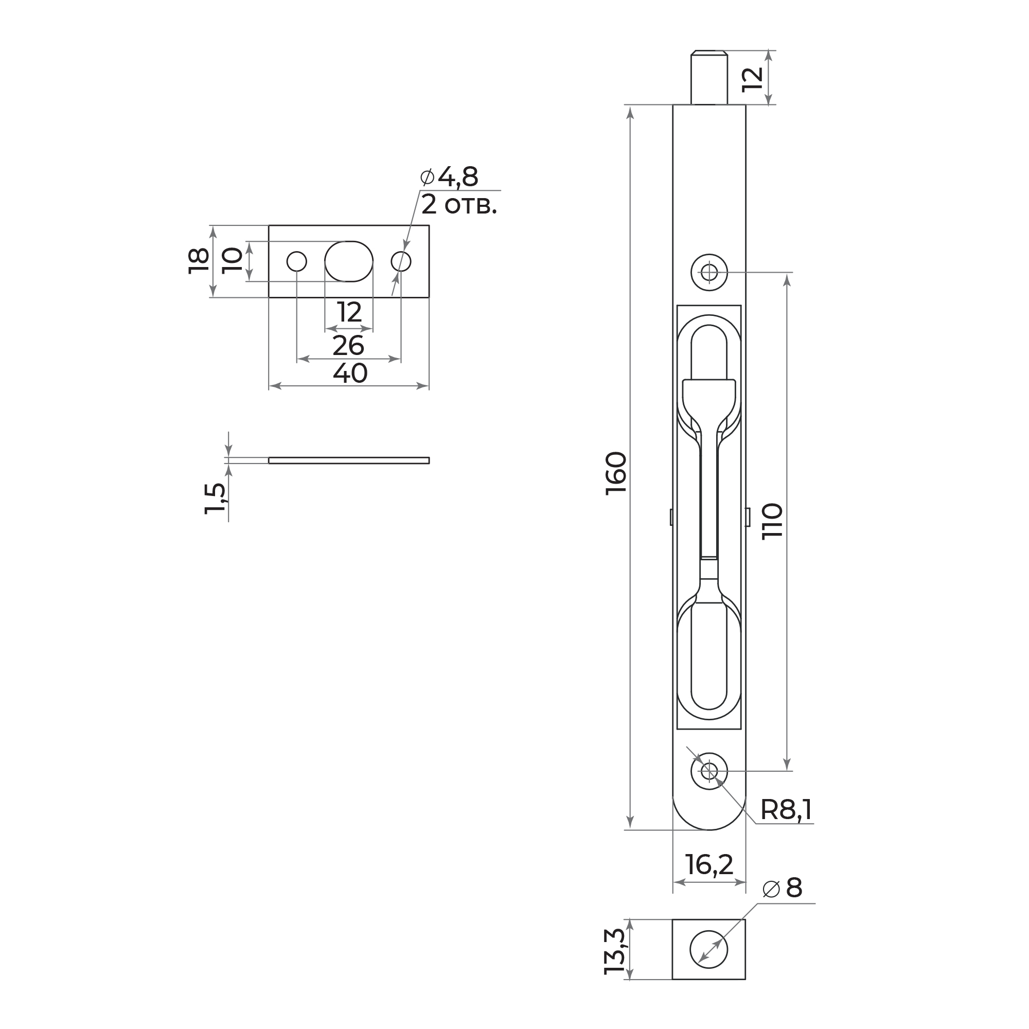 Торцевой упор RIGEL-FB 160/R BL черный