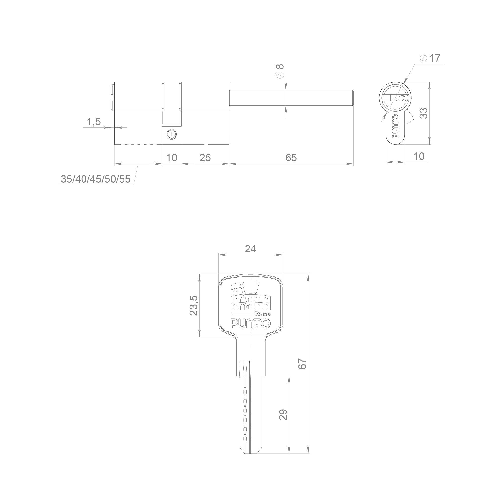 Цилиндровый механизм Z3007Tang85(50+10+25) со штоком CP хром