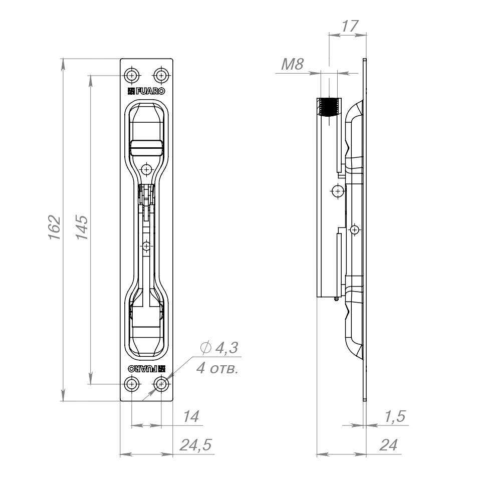 Задвижка торцевая RIGEL-body/160 (TDB 160-24) без ригеля в комплекте