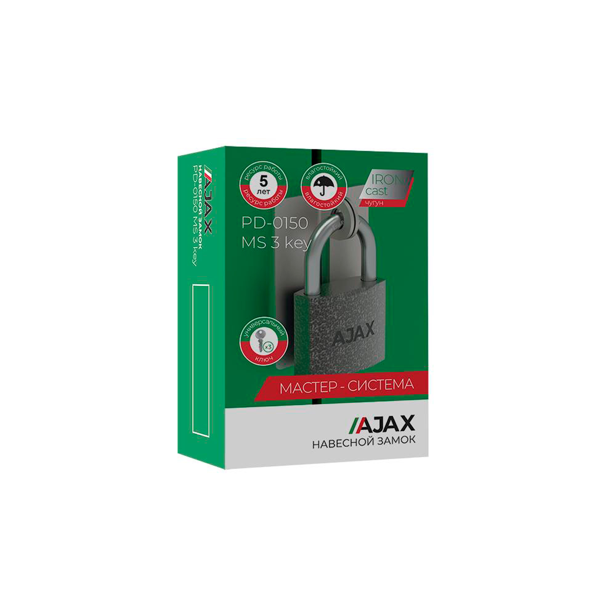 Замок навесной PD-0150 MS 3 key англ./коробка