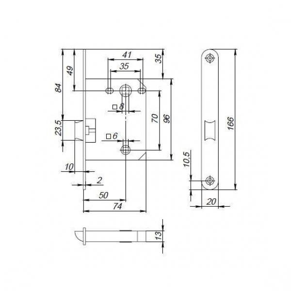 Материал защелки - Пластиковая защелка Межосевое расстояние - 72 мм Ответная планка - Нет Удаление квадрата под ручку - 50 мм Тип упаковки - Пакет