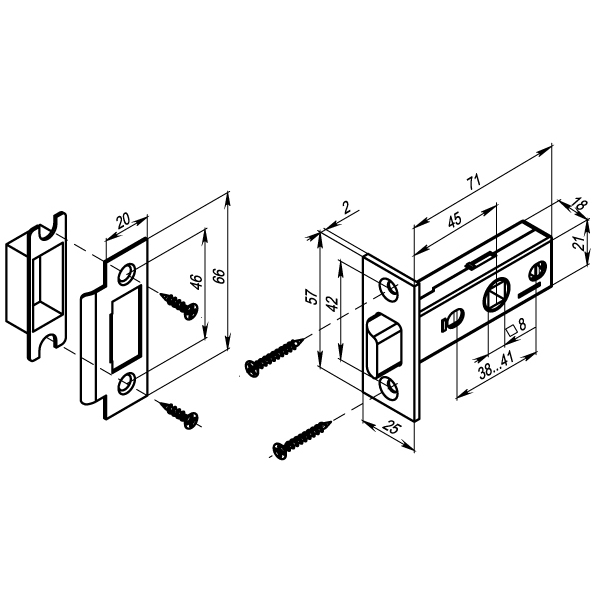 Материал защелки - Металлическая защелка Межосевое расстояние - нет Ответная планка - Есть Удаление квадрата под ручку - 45 мм Тип упаковки - Коробка