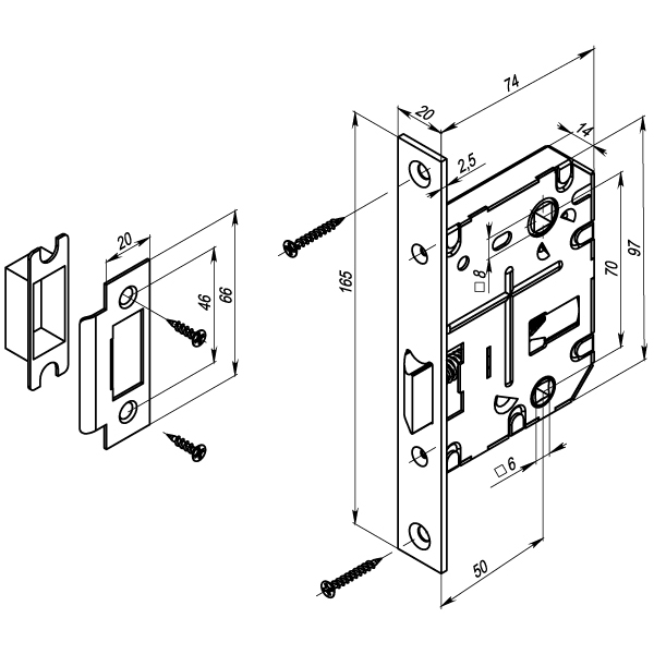 Материал защелки - Металлическая защелка Межосевое расстояние - 70 мм Ответная планка - Есть Удаление квадрата под ручку - 50 мм Тип упаковки - Коробка